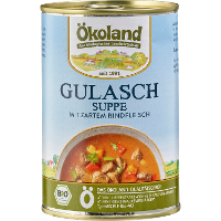 Trinkwasser, 9% Rindfleisch* gegart, 8,1% Paprika*, Zwiebeln*, WEIZENMEHL*, Sonnenblumenöl*, Tomatenmark*,SELLERIE*, Steinsalz, Maltodextrin*, Rohrohrzucker*, Meersalz, Karotten*, Maisstärke*, Gewürze* (Muskat*, Curcuma*, Knoblauch*, Pfeffer*, Paprika*, Kümmel*), Liebstöckel*, Verdickungsmittel: Guarkernmehl*.| Energie | Fett | gesättigte Fettsäuren | Kohlenhydrate | Zucker | Ballaststoffe | Eiweiss | Salz |