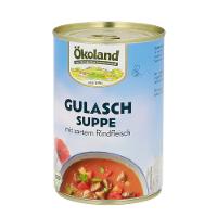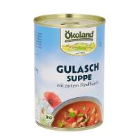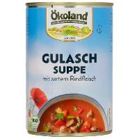 Trinkwasser, 9% Rindfleisch* gegart, 8,1% Paprika*, Zwiebeln*, WEIZENMEHL*, Sonnenblumenöl*, Tomatenmark*,SELLERIE*, Steinsalz, Maltodextrin*, Rohrohrzucker*, Meersalz, Karotten*, Maisstärke*, Gewürze* (Muskat*, Curcuma*, Knoblauch*, Pfeffer*, Paprika*, Kümmel*), Liebstöckel*, Verdickungsmittel: Guarkernmehl*.| Energie | Fett | gesättigte Fettsäuren | Kohlenhydrate | Zucker | Ballaststoffe | Eiweiss | Salz |