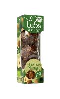 62 % Datteln*, 15 % HASELNUSS-Nougat* (Rohrohrzucker*, 6 % HASELNUSSkerne*, Kakaobutter*, Kakaomasse*), CASHEWkerne*, 6 % HASELNUSSkerne* geröstet, Kakaopulver* stark entölt, HAFERvollkornflocken* glutenfrei, Agavendicksaft*, Meersalz.| Energie | Fett | gesättigte Fettsäuren | Kohlenhydrate | Zucker | Ballaststoffe | Eiweiss | Salz |
