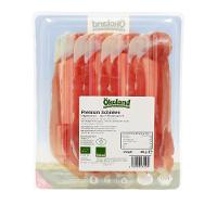 Über 4 Monate im handwerklichen Naturreifeverfahren ohne Nitritpökelsalz gereift entwickelt der Ökoland Premium Schinken seinen unverfälschten Geschmack. Nur bester Schweineschinken wird hierfür verarbeitet alles unter strengen Qualitätskontrollen. Bioland-zertifiziert. Ohne Nitritpökelsalz und andere Zusatzstoffe hergestellt. Von Natur aus glutenfrei laktosefrei natürliche Hefenbildung durch Fermentation. Innovative Verpackung aus Polypropylen (PP) bewirkt hohe Recyclebarkeit für die Kreislaufwirtschaft von Verpackungsmaterialien.